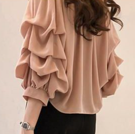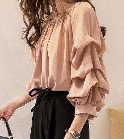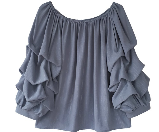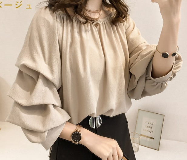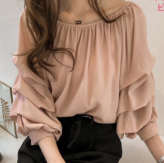 日系一字領露肩雪紡七分/長袖襯衫上衣 泡泡袖 領口圓領 一字領露肩 款式簡約大方 輕鬆輕鬆著出淑女風範 雪紡材質柔軟親膚